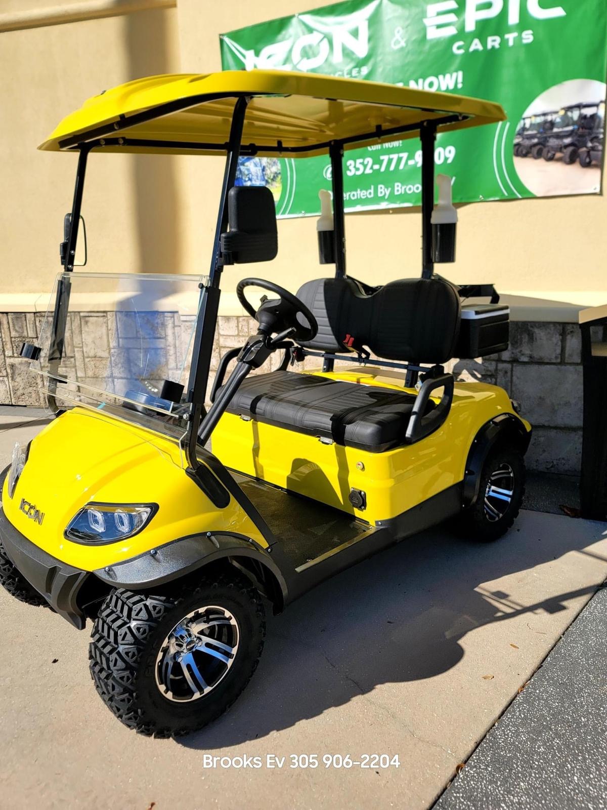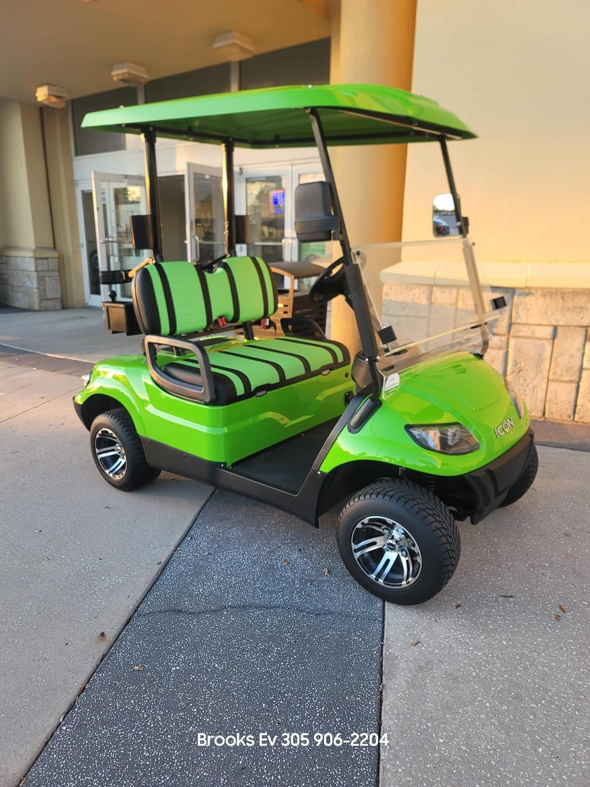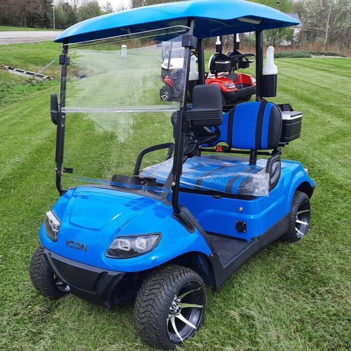 Drive straight from your home to the tee box, or your favorite restaurant, with a street legal ICON golf cart. Each ICON EV is loaded with class-leading features like 10″ aluminum wheels, 4-wheel disc brakes, powder coated steel chassis, lights, turn signals, high-speed rear ends, durable front and rear bumpers, painted rooftops, horns, digital gauges, and more.