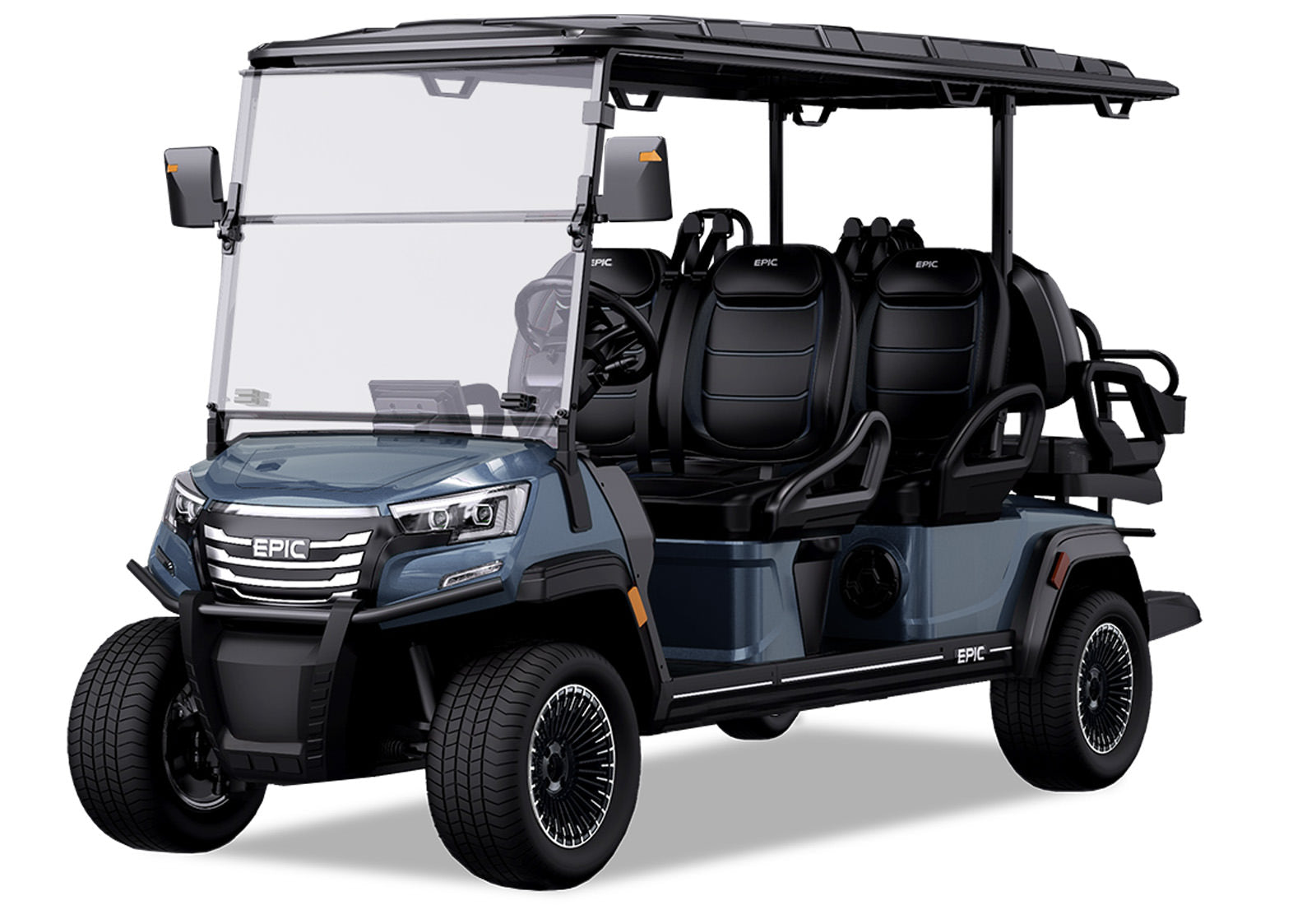 The Epic E60FX Golf Cart is the most incredible six-seater golf cart coming soon to an EPIC Carts dealer near you. Pre-order yours today!