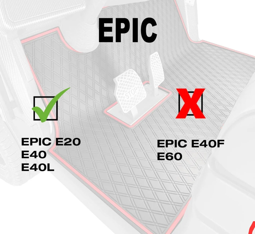 This golf cart floor mat fits EPIC E20, E40, & E40L models.