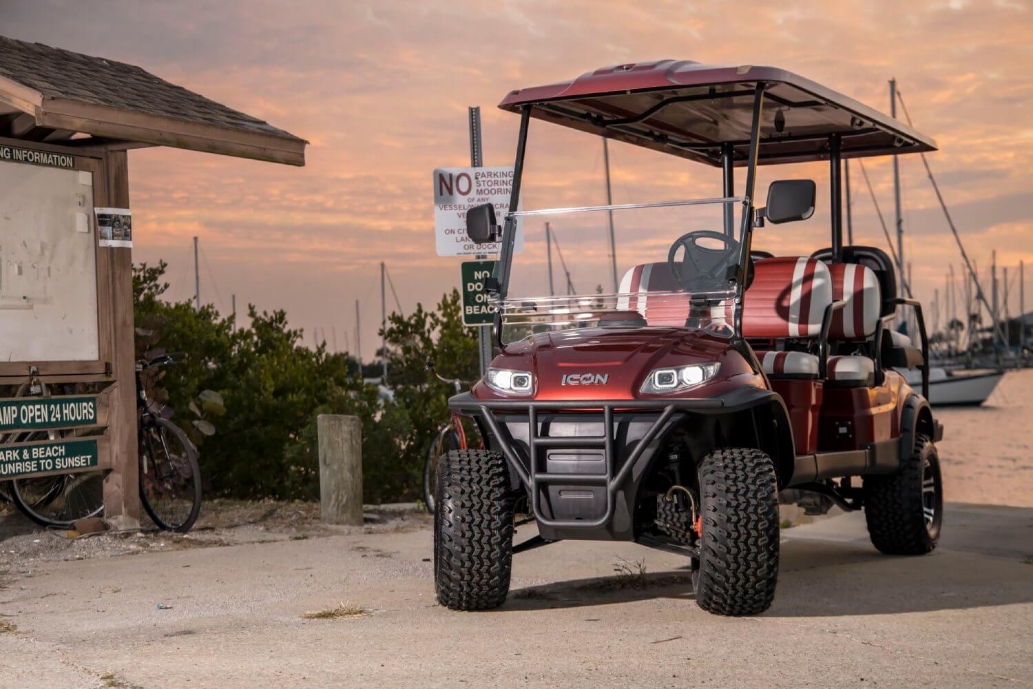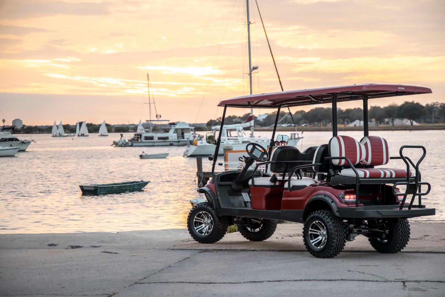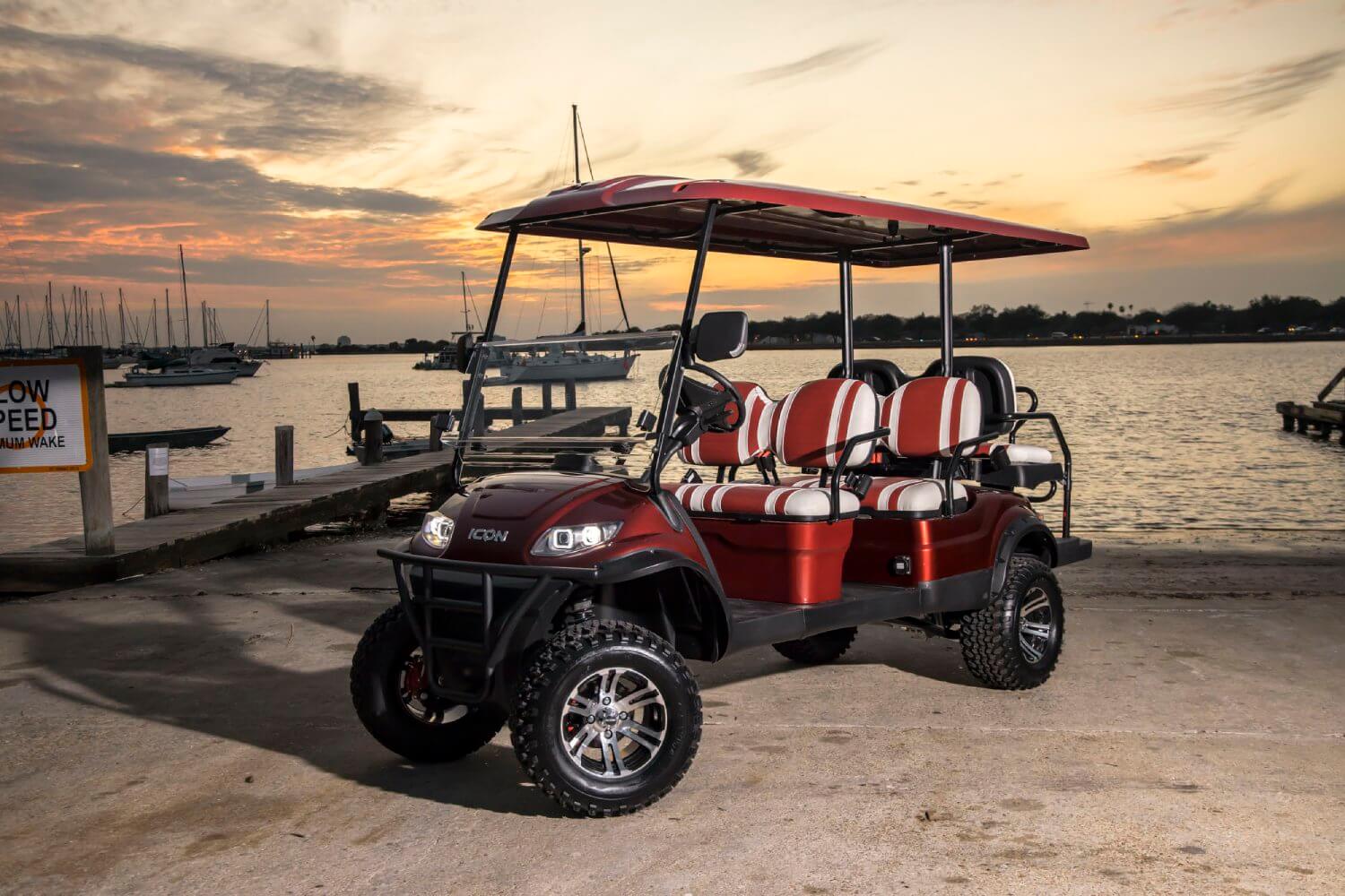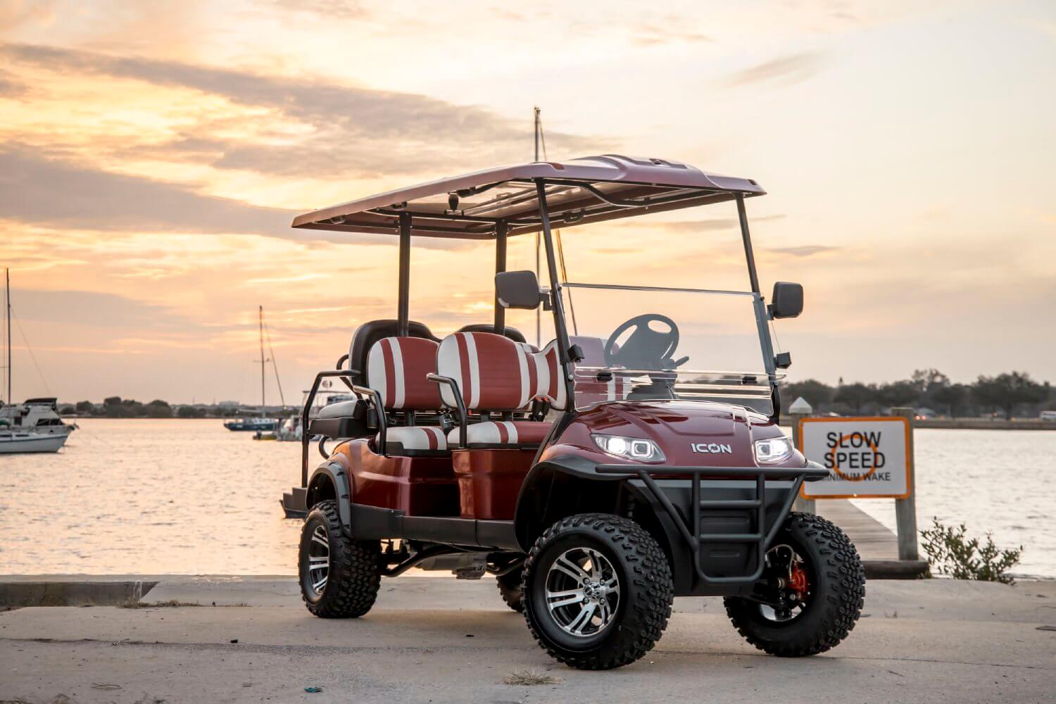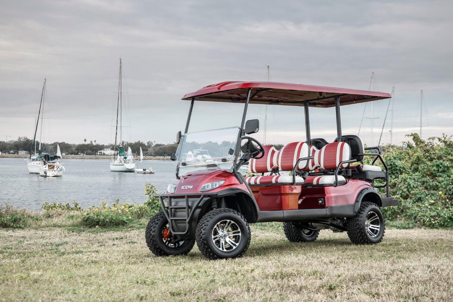 The Icon i60L is a spacious and robust golf cart with extended dimensions, providing more interior space and cargo capacity. It's ideal for larger groups or when you need extra room for your gear and equipment.