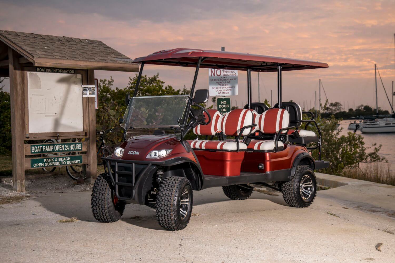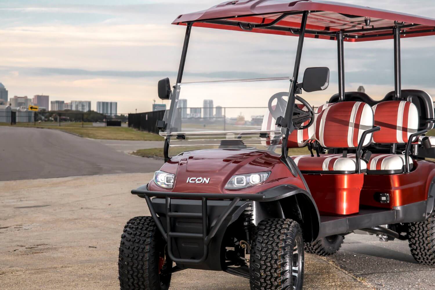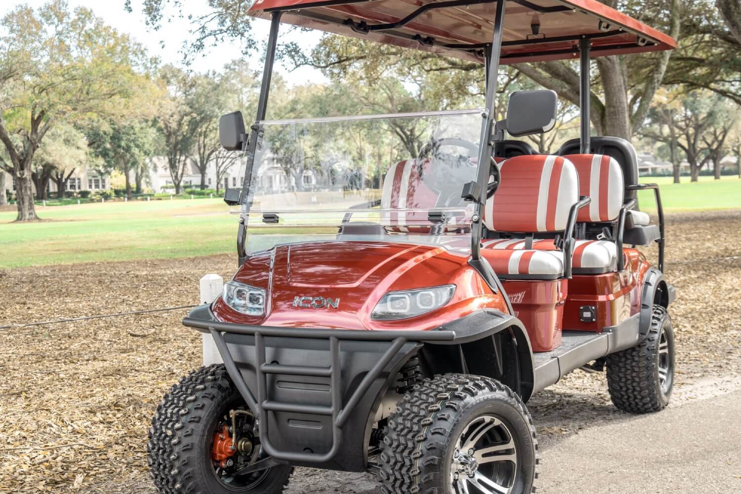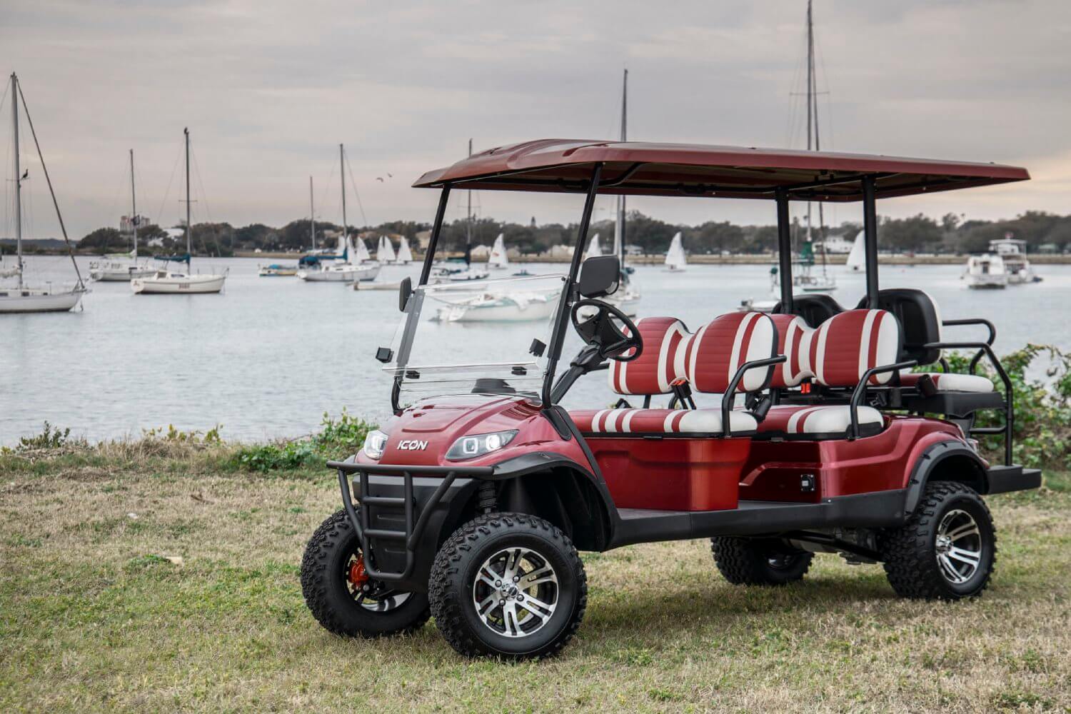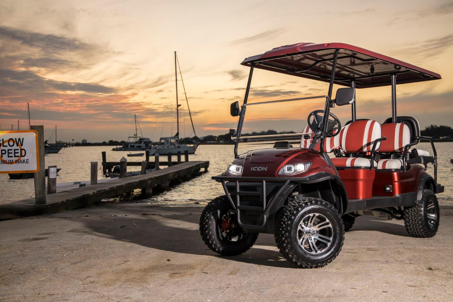 The Icon i60L is a spacious and robust golf cart with extended dimensions, providing more interior space and cargo capacity. It's ideal for larger groups or when you need extra room for your gear and equipment.