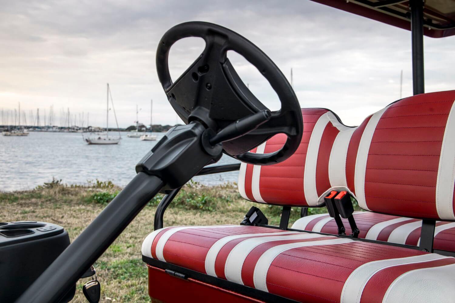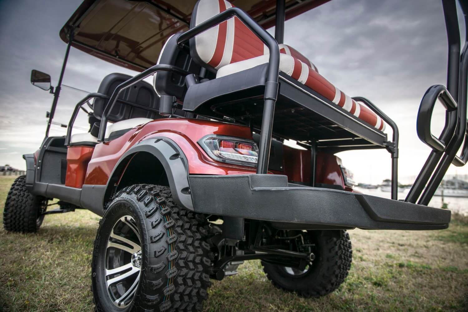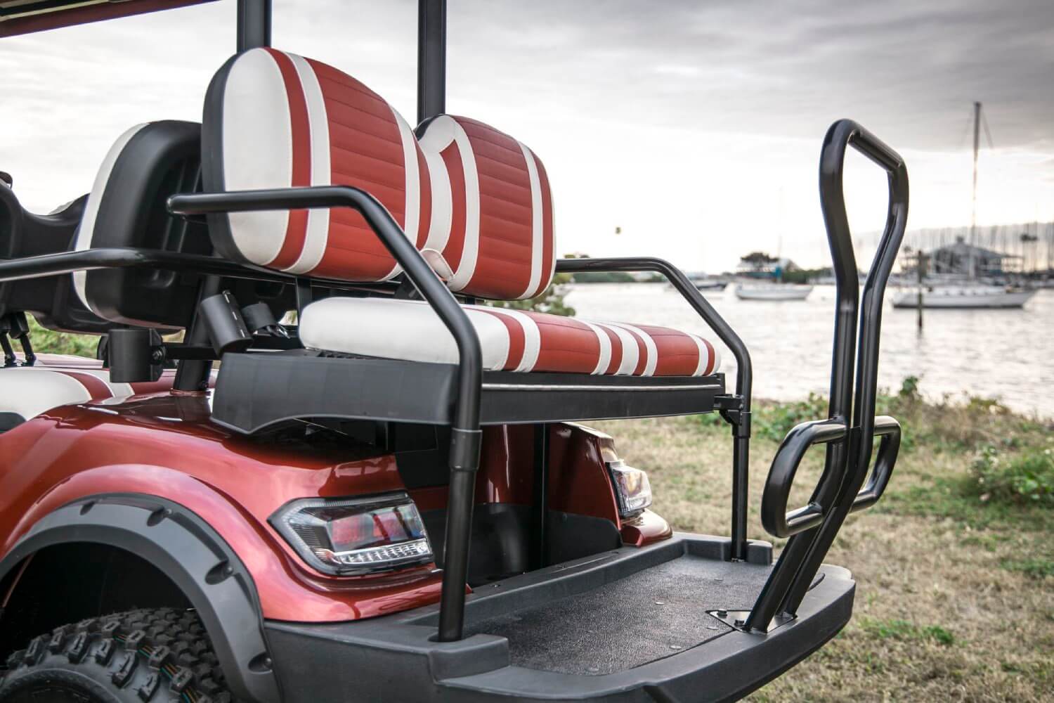 - Seats: The seats are made of marine-grade vinyl with custom-stitched panels, available in single color, and can be color-matched with white or black accents.